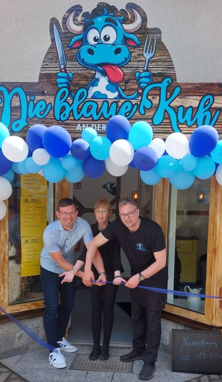 Wir haben uns sehr gefreut, dass sich unser Bürgermeister Andreas Heinig die Zeit genommen hat, mit uns gemeinsam das blaue Band zu durchtrennen und "Die blaue Kuh" zu eröffnen!